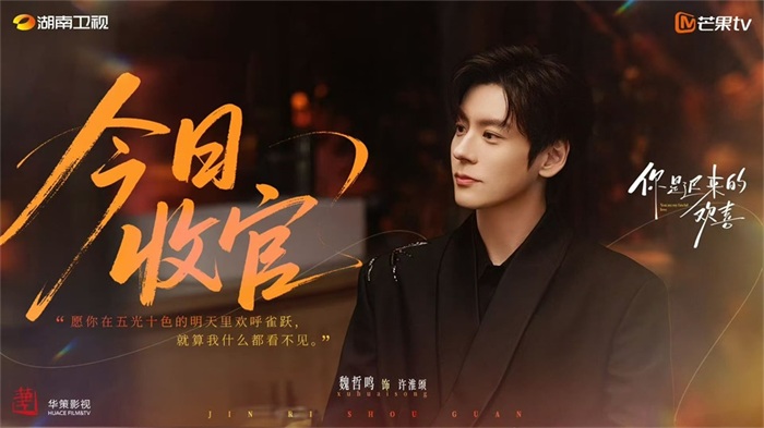 由华策影视出品,刘栋执导,魏哲鸣、郑合惠子领衔主演,李俊贤、李歌洋、陈昊蓝主演,刘小北、张远特邀出演,改编自晋江文学城作者顾了之同名小说都市爱情剧《你是迟来的欢喜》近日湖南卫视、芒果TV圆满收官该剧以许淮颂魏哲鸣 饰)与阮喻郑合惠子 饰)跨越十年的暗恋心事为主线,在轻喜治愈的基调中交织着成年人的情感拉扯与烟火日常。播出期间,该剧凭借强劲的收视表现、全网破圈的讨论度以及扎实细腻的口碑,成为今年春日剧集市场的一匹黑马。